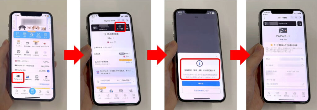 カード番号を確認する際は、生体認証(Face IDやTouch IDなど)が必要となるため、セキュリティ面でも安心して利用できます。
