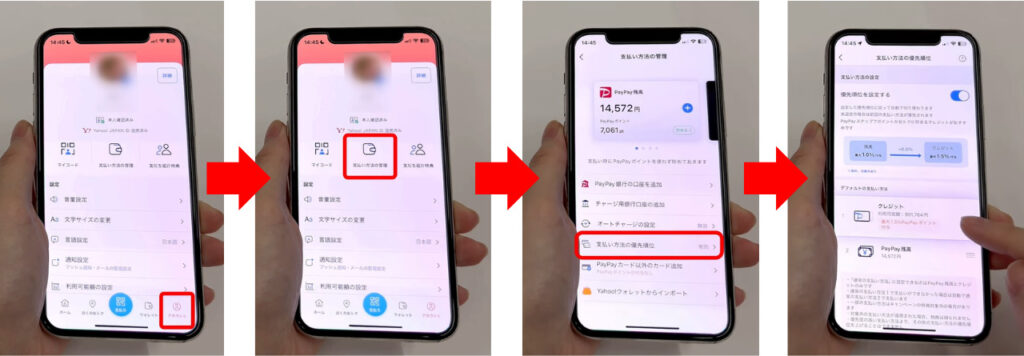 他の支払い方法(PayPay残高など)を優先したい場合は、以下の手順で簡単に変更が可能です。