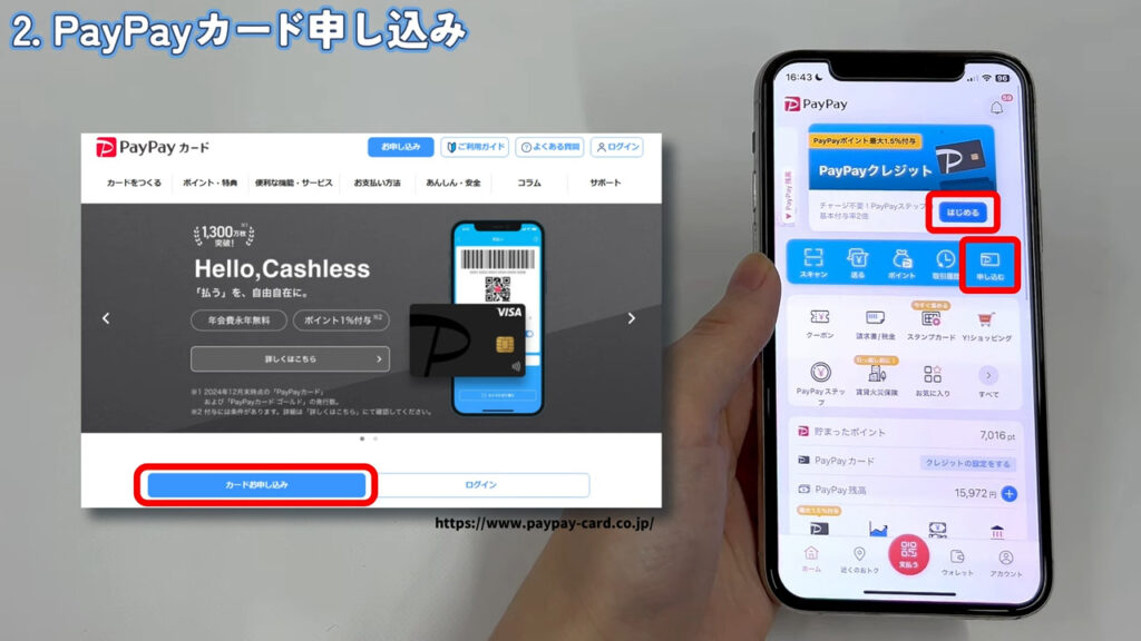 PayPayカード公式サイトの申し込みボタンから手続きを行います。