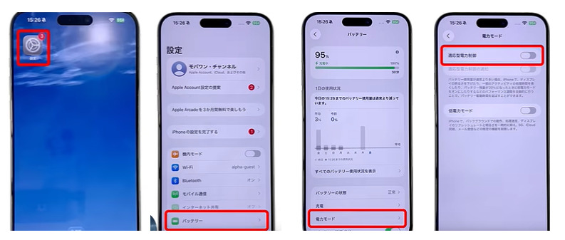 ただし、この適応型電力制御機能は高度な処理能力を要するため、iPhone 15 Pro以降の機種のみ対応な点には注意しましょう。