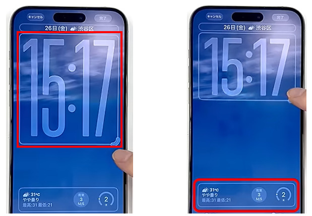 iOS 26では、ロック画面を長押しして「カスタマイズ」を選択することで、デザインを細かく調整できるようになりました。