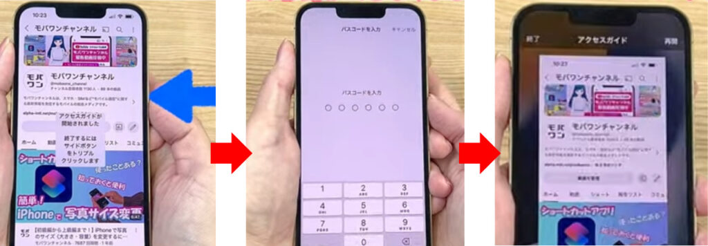 この機能を使えば、他人にiPhoneを渡す際の「ヒヤッと体験」から解放され、安心してスマホを人に手渡すことができますよ。