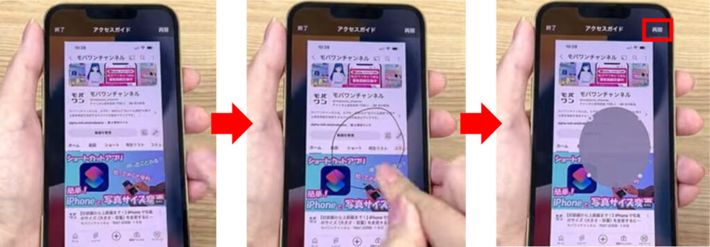3. 画面上のタップを無効にしたい箇所を指で囲む