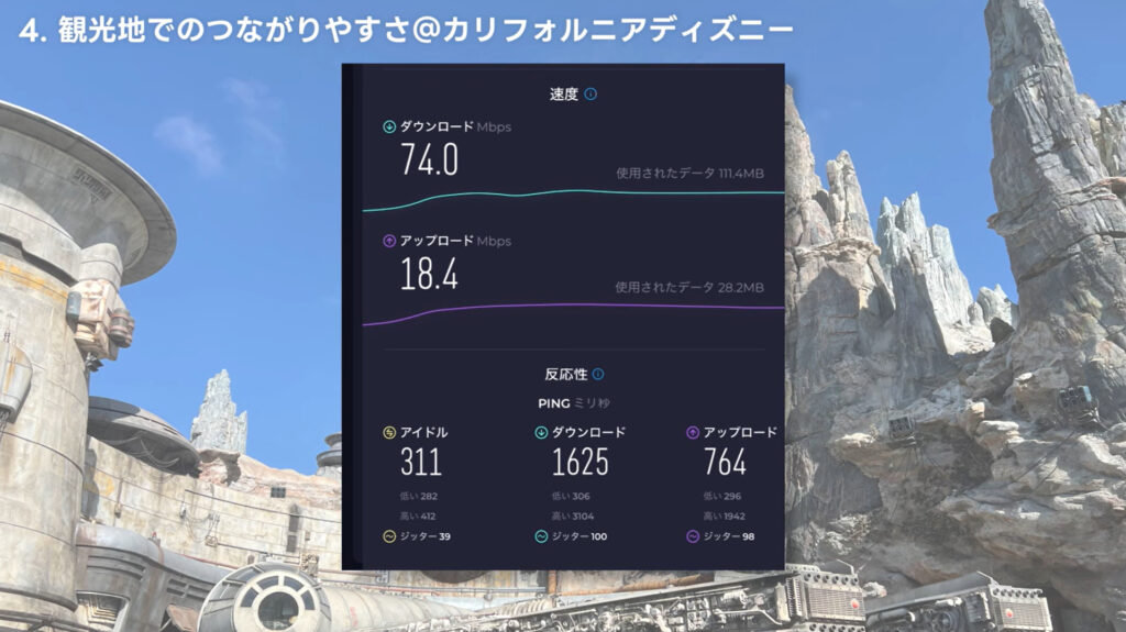 まずは、ロサンゼルス観光の定番、カリフォルニアディズニーの通信速度から!