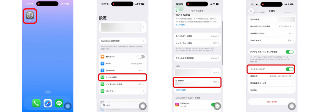 「海外通信の設定って難しそう……」と思われがちですが、ahamoでのローミング設定は驚くほど簡単です。以下の手順で、設定を行いましょう。