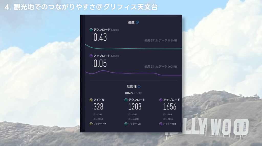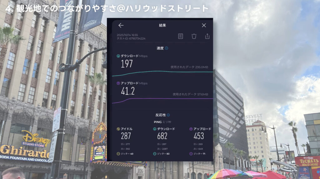 ここからは、実際にロサンゼルスで巡った4つのスポットにて測定した通信速度をレポートしていきます。