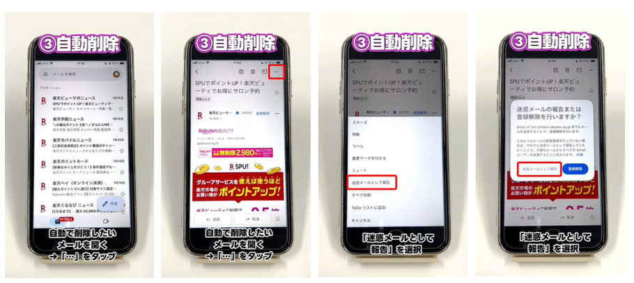 3. 迷惑メールとして報告して自動削除する方法