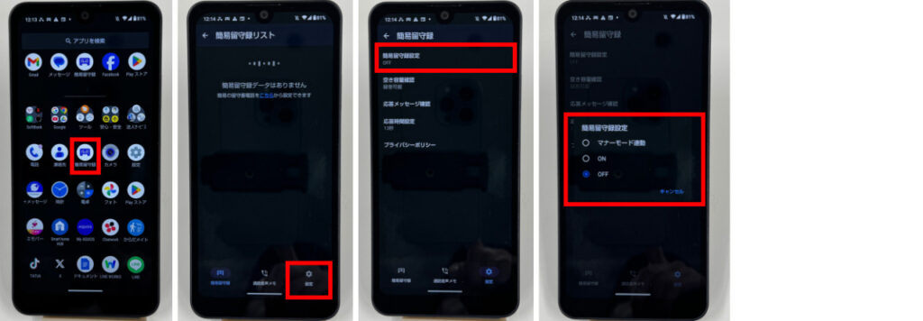 録音された伝言は「簡易留守録」アプリから確認が可能です。